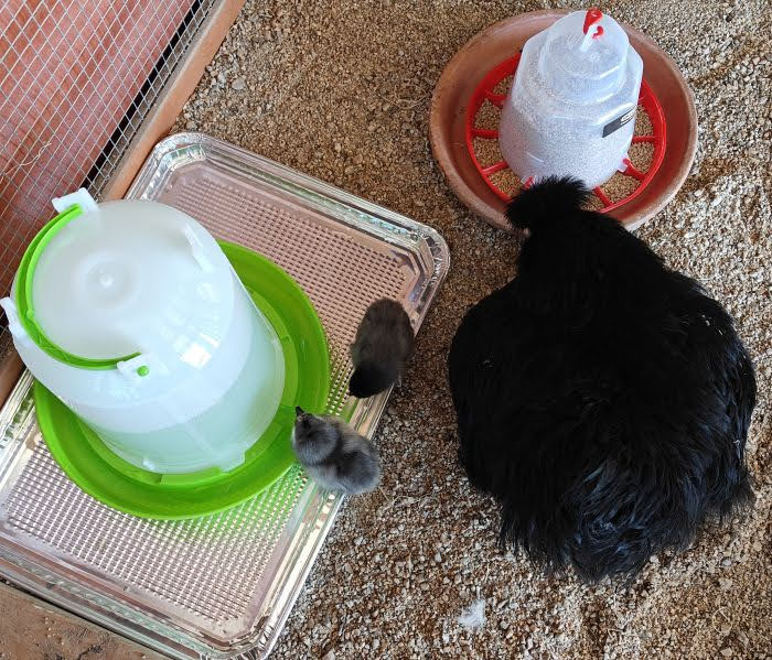 Raven is a Silkie Bantam who has successfully raised baby chicks for me over the past five years. She’s never hatched eggs herself since I don’t keep a rooster. Instead, she raises what are called “hatch-a-longs.” This means two-day-old baby chicks are placed under her after she’s been sitting on a clutch of unfertilized eggs for at least 21 days. Many chicken keepers prefer to sneak babies under their hens at night, but I don’t. I take away Raven’s eggs during the day, place broken egg shells under her and tuck the baby chicks under her wing. Then make sure to see if she accepts them. Leaving them alone all night feels a bit risky to me, so I prefer to keep an eye on them throughout the day, though I’ll admit, I cheat and use a camera to watch them. Once Raven has accepted her new babies as her own, I move them to an enclosure inside the coop where the rest of the flock can still see them. From that moment on, she takes over completely. She teaches them how to eat and drink, and after about two weeks, I open the door of their little safe house and let Mamma bring her babies out to meet the rest of the flock. I don’t rush it, the hen will decide to lead them out when the time is right. Here is what my enclosure for the hen and babies looks like inside the coop, and a short video of the chicks among the flock at two weeks old.